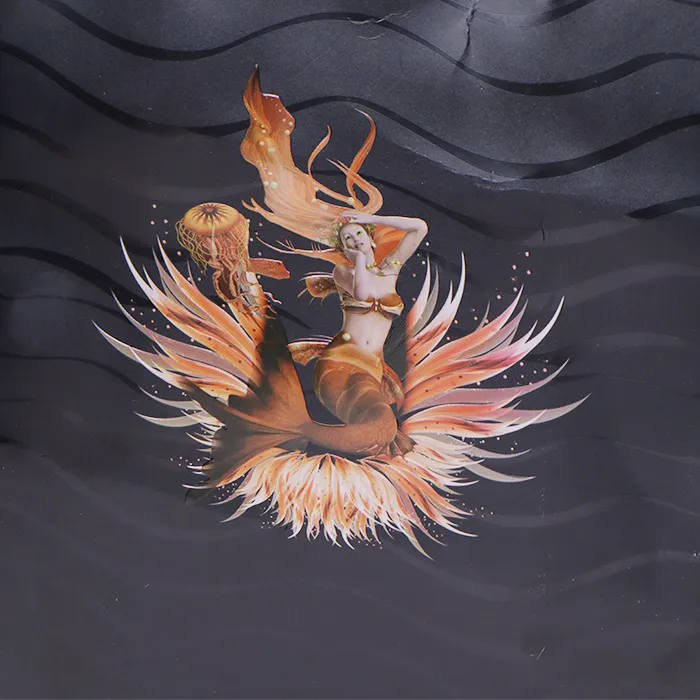 Sebelum ini, kilauan logam dan tekstur licin sering dikaitkan dengan pengecapan foil panas. Walau bagaimanapun, Beg Beli-belah Pakaian ini secara inovatif menggunakan proses pencetakan dan cetakan timbul, menggantikan pengecapan kerajang panas tradisional untuk mencipta pengalaman visual dan sentuhan baharu. Percetakan dan emboss membolehkan lebih banyak penggredan warna. Pelanggan boleh bebas memperibadikan warna cetakan, kemasan matte atau berkilat, kesan lutsinar atau kecerunan, tidak seperti pengecapan kerajang panas tradisional yang terhad kepada kerajang emas, perak, tembaga atau berwarna tertentu. Percetakan dan emboss membolehkan kombinasi pelbagai warna. Proses timbul juga memberikan teks, logo atau corak kesan tiga dimensi, meningkatkan interaktiviti pembungkusan.