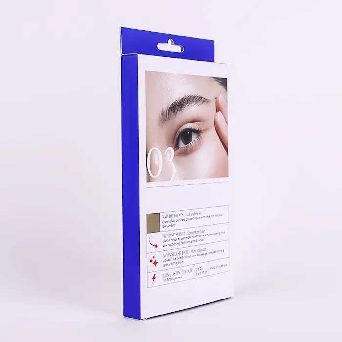 Kotak Hang Tab bercetak ini telah direka bentuk dan dihasilkan oleh Doyoupacks untuk Jenama Kecantikan Pasaran, yang mempunyai kehadiran kukuh dalam saluran runcit pasaran besar-besaran. Apabila kilang kami pada mulanya mereka bentuk struktur pembungkusan, kami mempertimbangkan senario penjualannya, dan produk di dalamnya ialah pen warna kening. Kotak Runcit Gantung tersuai adalah pilihan yang paling sesuai, kerana ia sesuai untuk dipamerkan digantung dari cangkuk dalam rangkaian runcit, termasuk kedai ubat dan kedai yang memfokuskan kecantikan. Selain itu, kapasiti galas beban yang stabil dan reka bentuk bukaan dua hujung menjadikannya sesuai untuk pembungkusan set berbilang item yang ringan seperti pen warna kening.