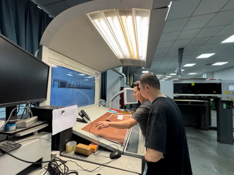 Pasukan percetakan teras kami mempunyai lebih 20 tahun pengalaman barisan hadapan dalam pengurusan warna, dan juruteknik percetakan kanan memantau dalam masa nyata untuk memastikan warna yang tepat dan stabil.