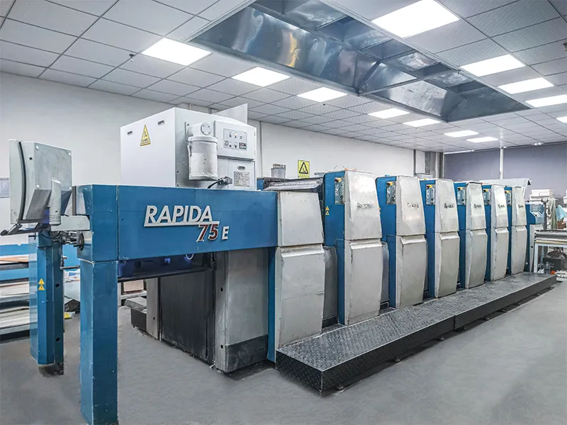Kami menggunakan mesin pencetak Heidelberg dan KBA-RAPIDA yang diimport dari Jerman, dilengkapi dengan colorimeter X-Rite dan kad warna Pantone rasmi, yang boleh mengukur dan membandingkan warna dengan tepat.